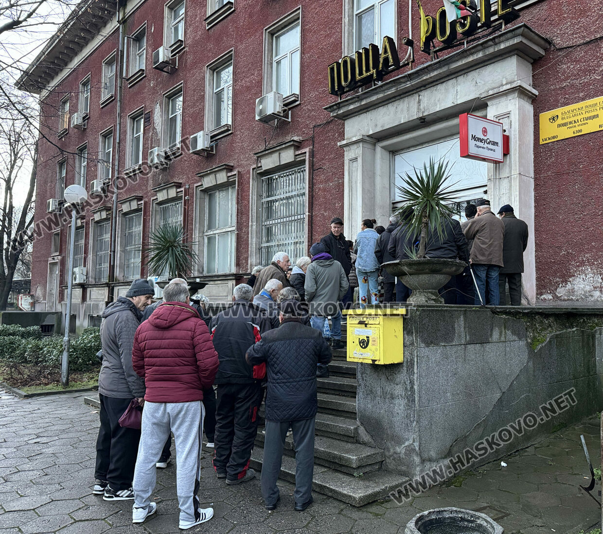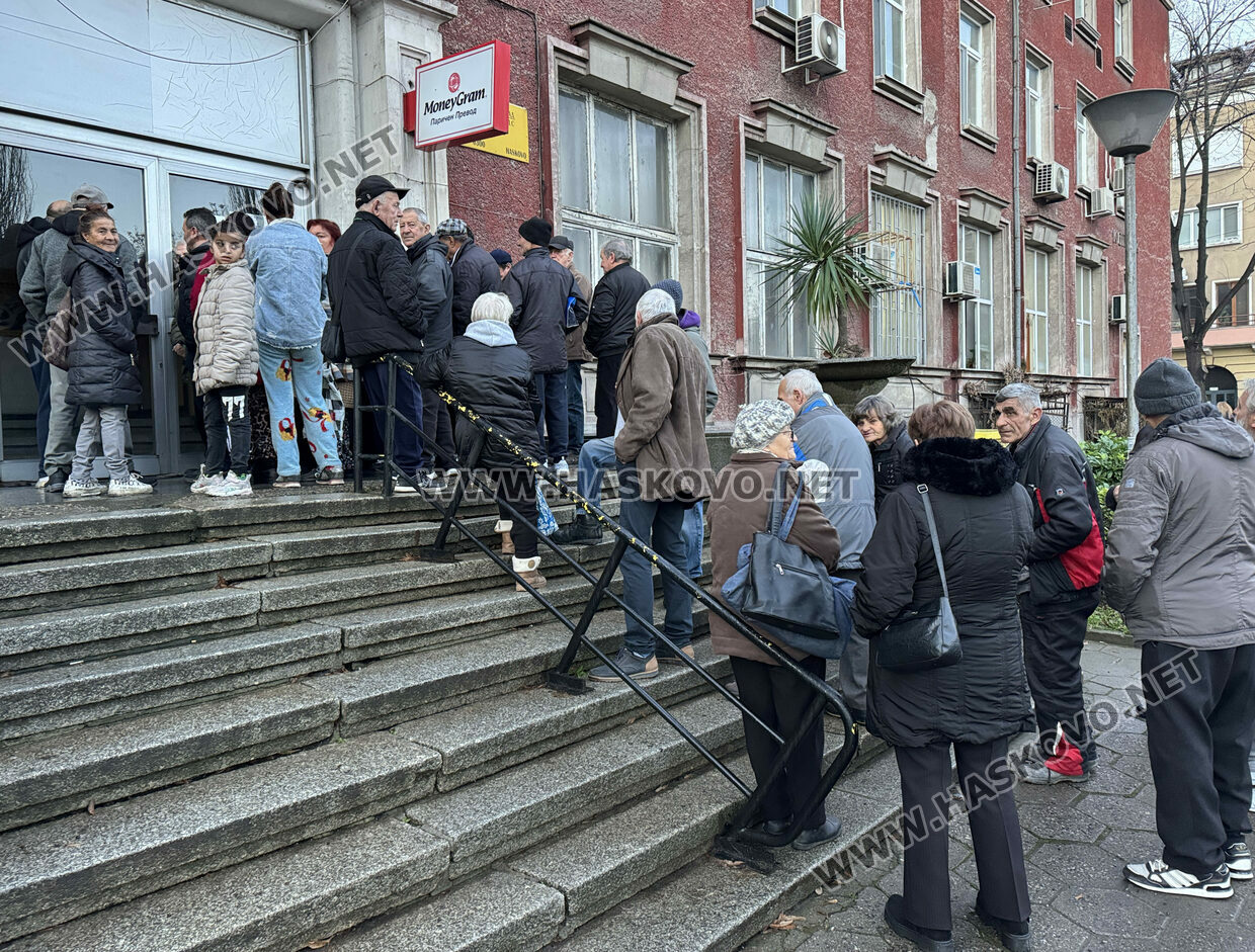 Пред централната поща в Хасково опашката достигна 200 човека. „Работи само едно гише“, оплакаха се чакащи на опашката.