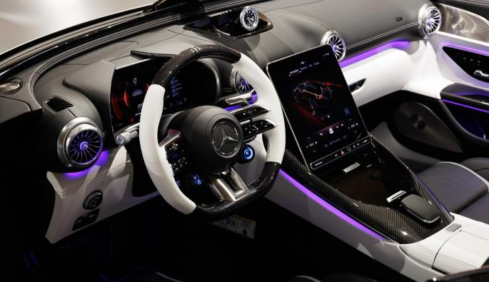 Задната ос има функция за завиване на колелата, за по-голяма прецизност. Спирачките са спортни, композитно-керамични, познати от другите модели на AMG.