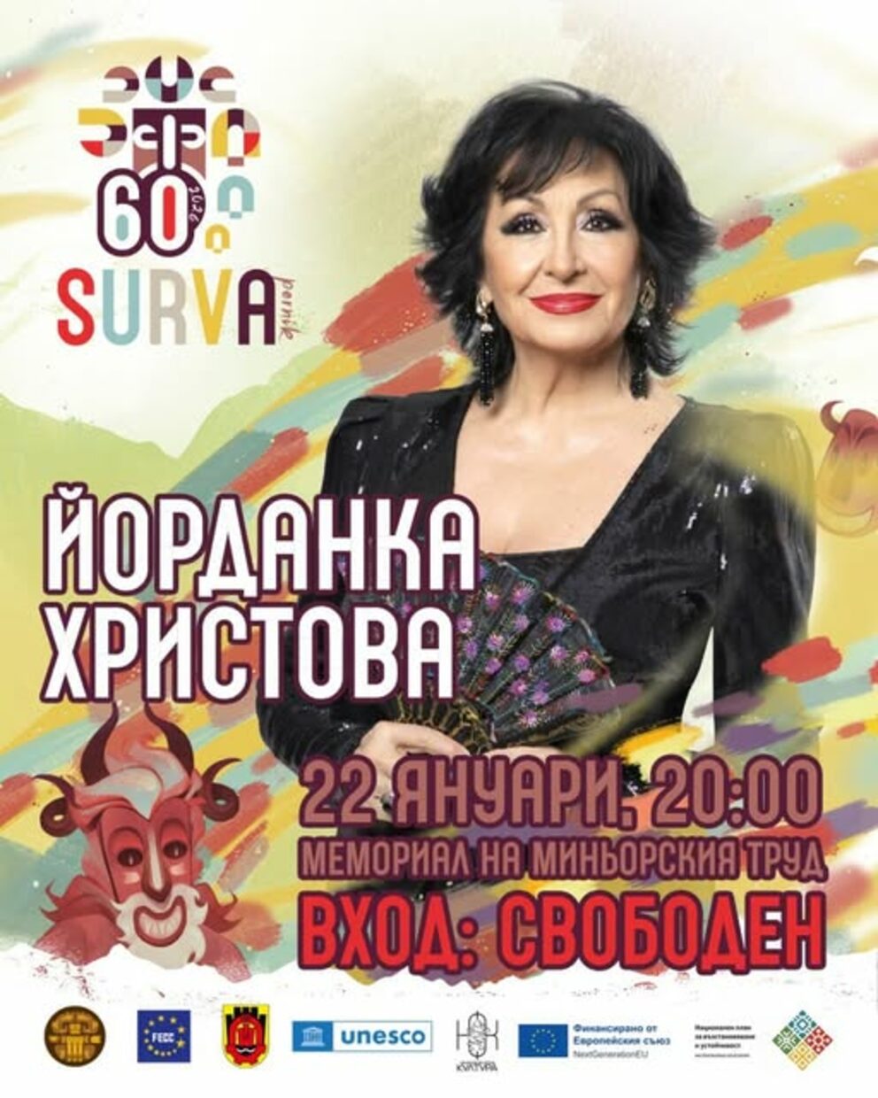 Тази публикация е създадена в изпълнение на Проект BG-RRP-11.021-0018-C01 „Проект "Сурва в движение“- внедряване на ново поколение местни политики за култура“ по Процедура „Ново поколение местни политики за култура за големи общини“ финансиран от Европейския съюз, чрез инструмента Следващо Поколение ЕС (NextGenerationEU). Цялата отговорност за съдържанието се носи от Община Перник и при никакви обстоятелства не може да се счита, че този документ отразява официалното становище на Европейския съюз и Национален Фонд „Култура“