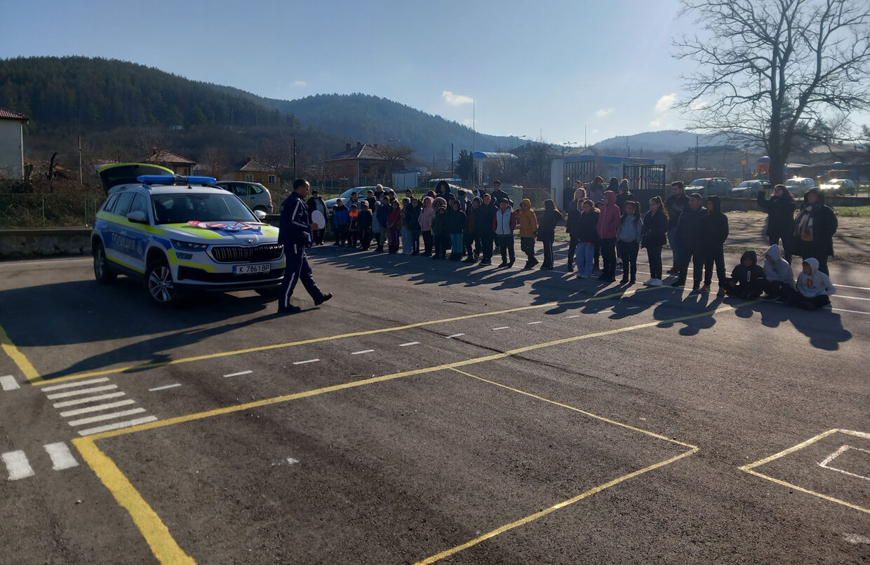 Двама полицаи от РУ-Крумовград и 50 деца проведоха час по пътна безопасност в село Странджево