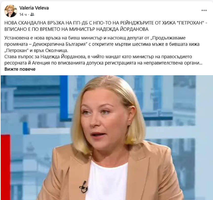 Стигна се дотам, че вече се искат обяснения и от бившата министърка на ДБ Надежда Йорданова като принципал на Агенцията по вписванията по времето на вписването на „Национална агенция за контрол на защитените територии“. Внушението е, че тя е оказала натиск върху ръководството на агенцията да впишат организацията на Калушев, въпреки че е било противозаконно.
