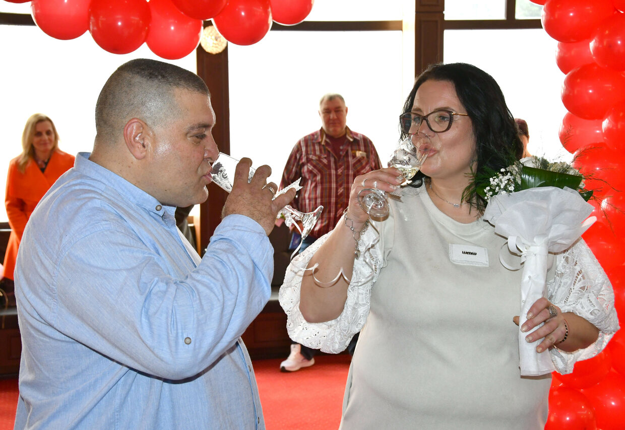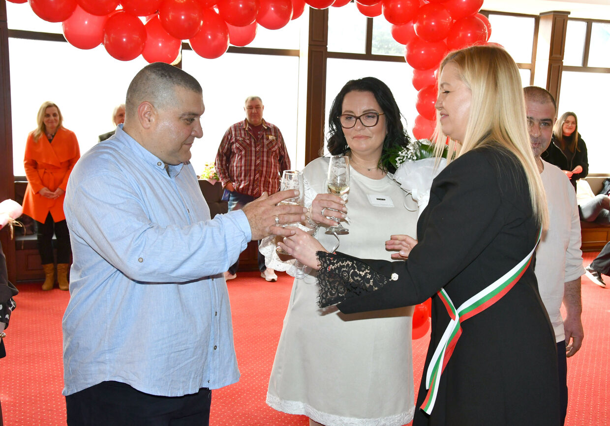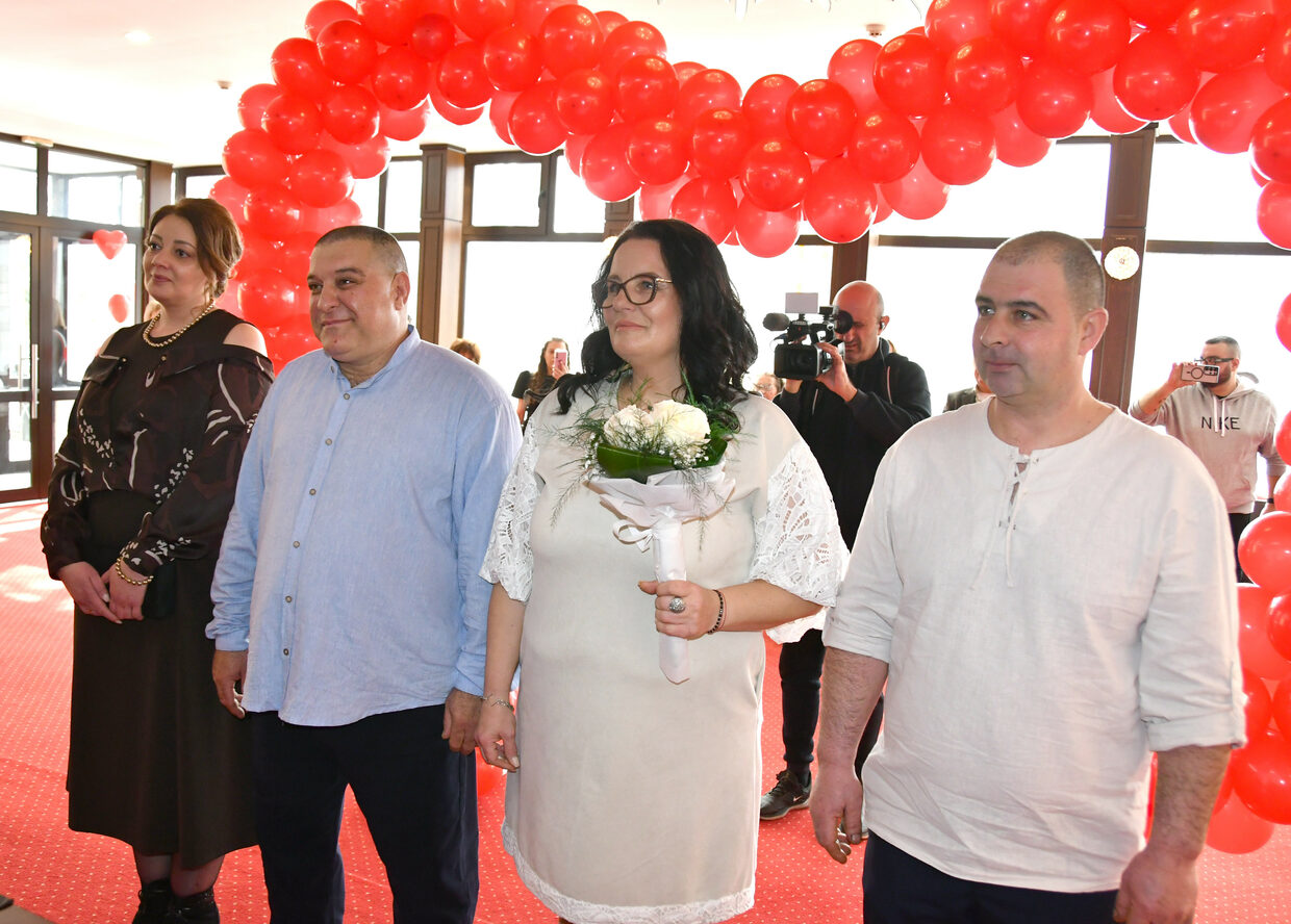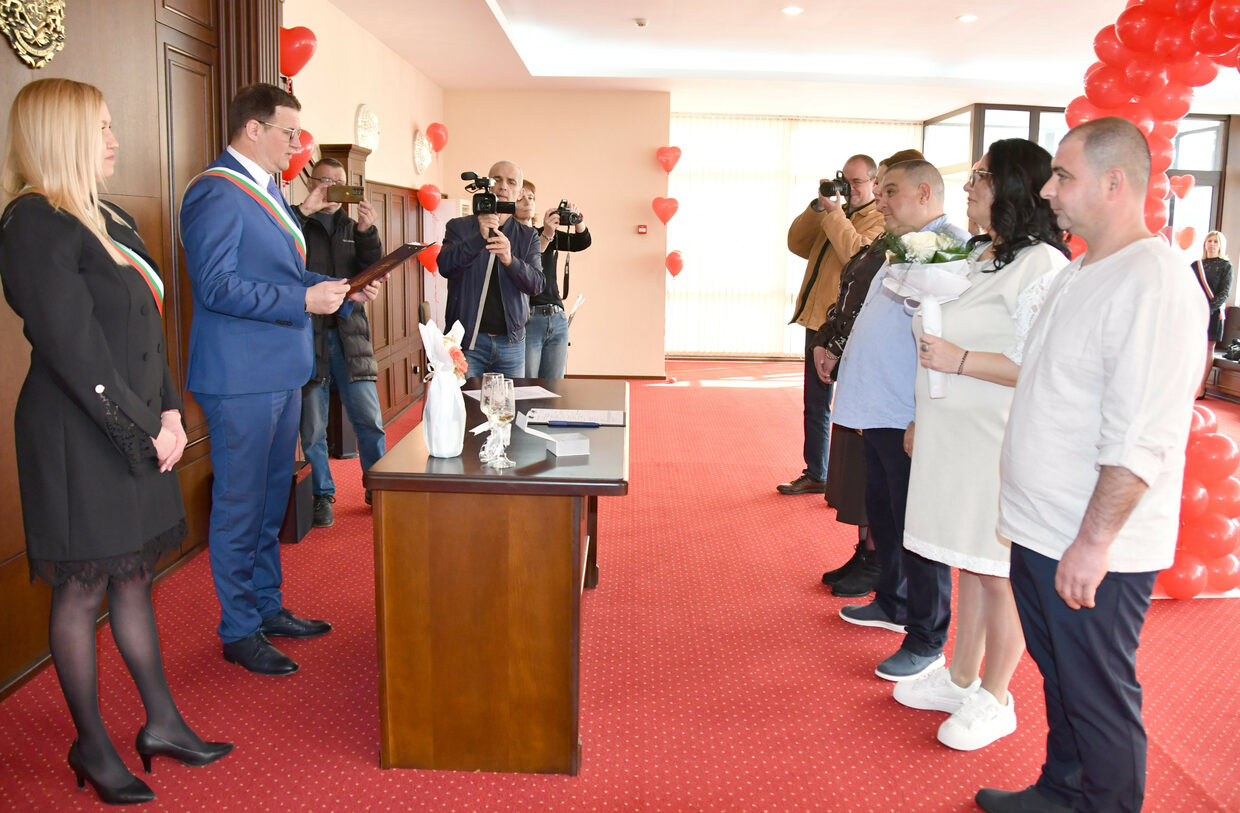 45-годишната Мария Карева и 48-годишният Павел Колев са една от двойките, които днес се врекоха във вярност и скрепиха обетите си с подпис. Двамата живеят на семейни начала от 26 години. Преди два месеца тя му предлага да подпишат граждански брак на 14 февруари.