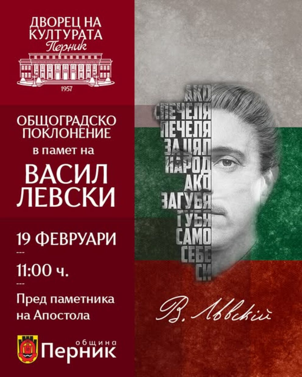 На 19 февруари от 11:00 ч. Перник ще се преклони пред паметта на Васил Левски.