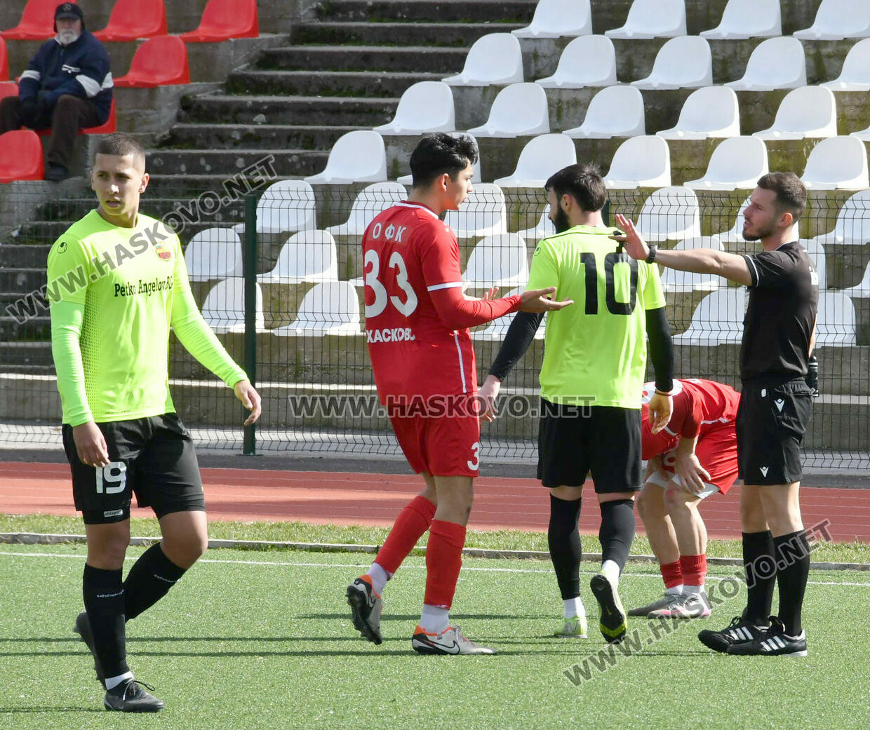 Иначе самата среща започна по отличен начин за гостите, които поведоха още в 8-та минута с гол на Диян Чойнев. Отново той покачи на 0:2 след близо половин час игра. Цветомир Петров направи резултата 0:3. Резервата Димитър Стефанов намали за 1:3. Владислав Узунов вкара и втори гол за домакините. И когато изглеждаше, че хасковлии се връщат в мача, спорни съдийски отсъждания доведоха до дузпа за гостите, което изнерви домакините и след пререкание с рефера Юлий Шекеров получи червен картон. В последствие дузпата бе реализирана и „Марица“ отново поведе с два гола аванс. Домакините не се отказаха и с второто си попадение в срещата Димитър Стефанов запази интригата до самия край на мача. Все пак гостите от Милево не допуснаха обрат и след 3:4 се класираха за зоналния етап на турнира. За ОФК „Хасково“ предстои мач от първенството. Тази събота тимът приема „Атлетик“ (Куклен).