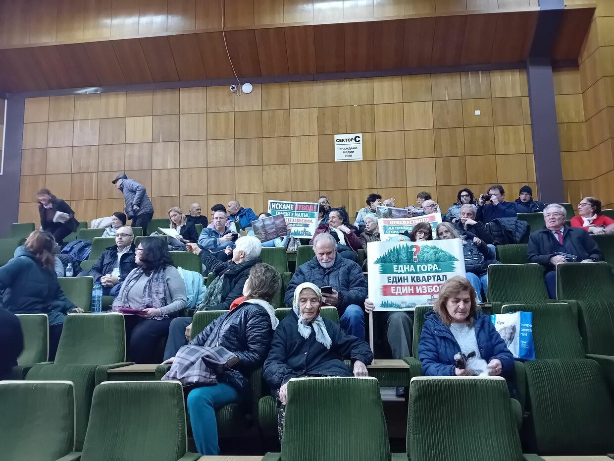 На заседанието бяха дошли много жители на квартала, които носиха плакати и настояваха да се спре изграждането на фотоволтаичната централа. Някои от тях взеха думата и заявиха ясно и категорично, че са против това инвестиционно намерение да се случва на местри от къщите им. Те посочиха, че искат гората в местността „Пазлак“ да се запази, защото е посадена с цел на това място, което е ерозионно. Гражданите допълниха още, че централата би повишила температурата в квартала и града и че може да се стигне до пожари, каквито неведнъж са се случвали в такива паркове. Жителите на квартала бяха единодушни, че искат да живеят на място с чист въздух и красива природа.