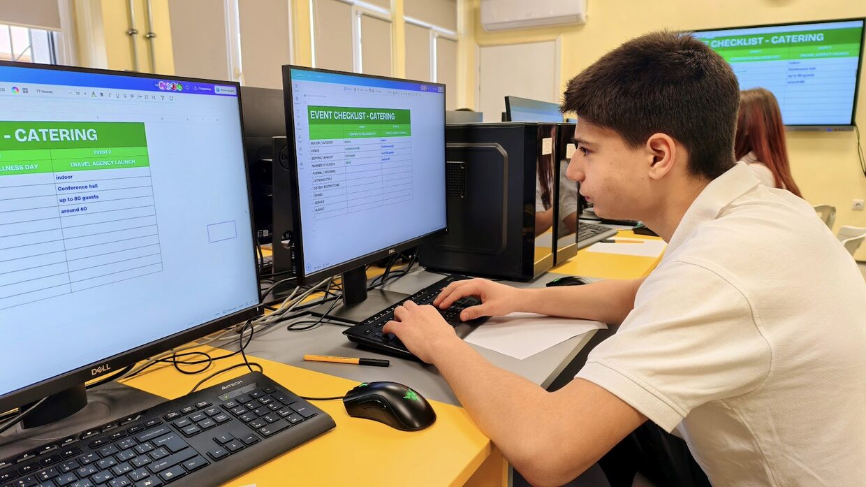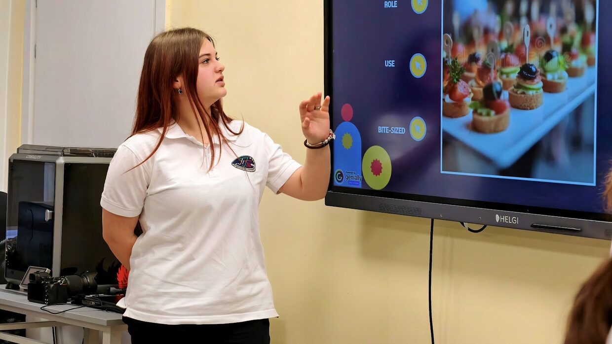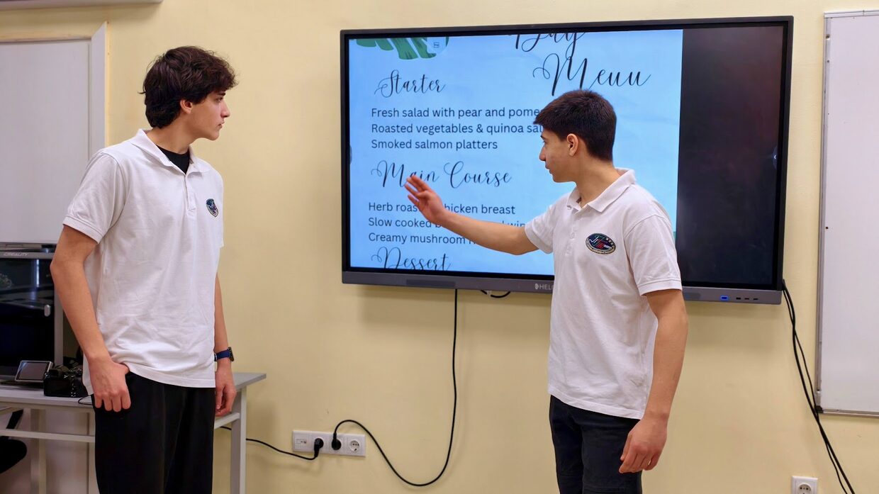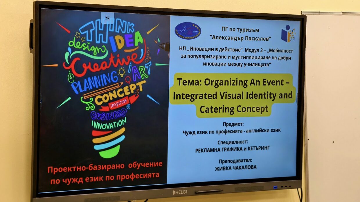 Темата на урока – „Organizing An Event – Integrated Visual Identity and Catering Concept“ – представи реална бизнес симулация, в която учениците трябваше да разработят цялостна концепция за събитие. Те анализираха клиентски бриф, разработиха меню според изискванията на клиента, създадоха визуална идентичност – лого и постер, съобразиха решенията си с бюджет, целева аудитория и бранд концепция и презентираха проекта си на английски език.