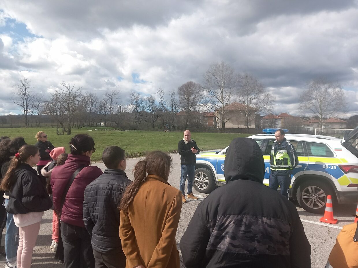 Учениците практически приложиха усвоените знания на площадката по пътна безопасност. Те бяха запознати с униформено облекло, отличителните знаци и помощни средства на полиция /регулировчик/, също така с оборудването на патрулните автомобили и видовете сирени за спешни случаи, използвани от полицията, пожарните служба и Спешна медицинска помощ. На училищния персонал беше представен анализът на полицията за пътния травматизъм при деца и ученици през 2025 година.