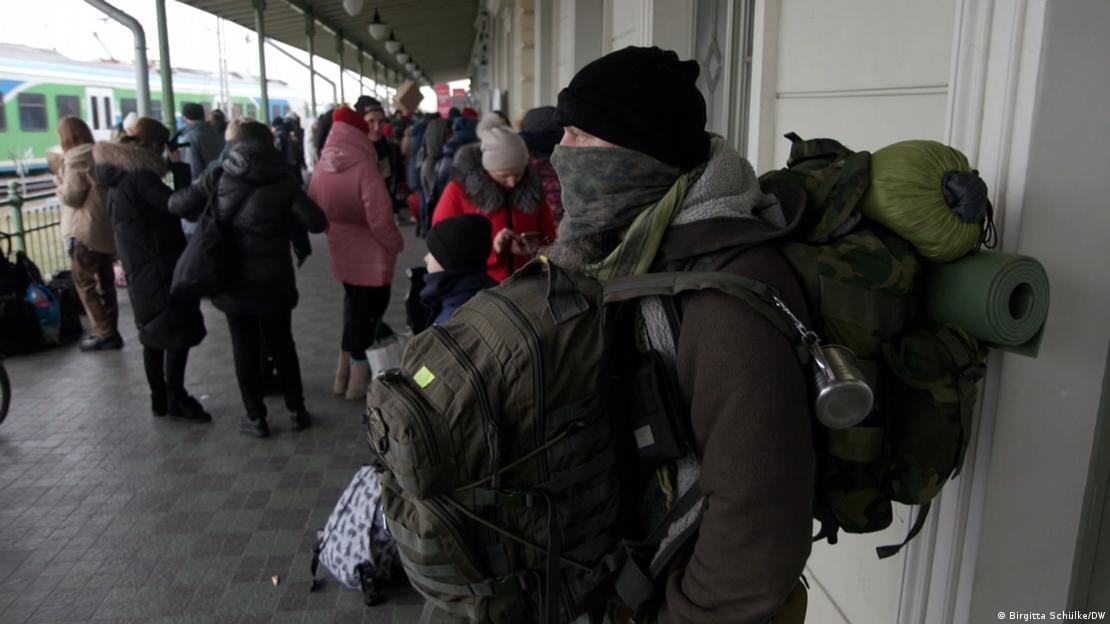 Доброволец от САЩ чака влак за Украйна на полска железопътна гара.  Снимка: Birgitta Schülke/DW