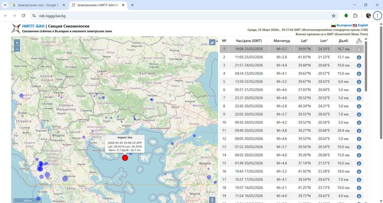 По информация на НИГГГ към БАН, трусовете са станали в акваторията на Егейско море, като към момента не се уточнява точната им локация спрямо населени места.