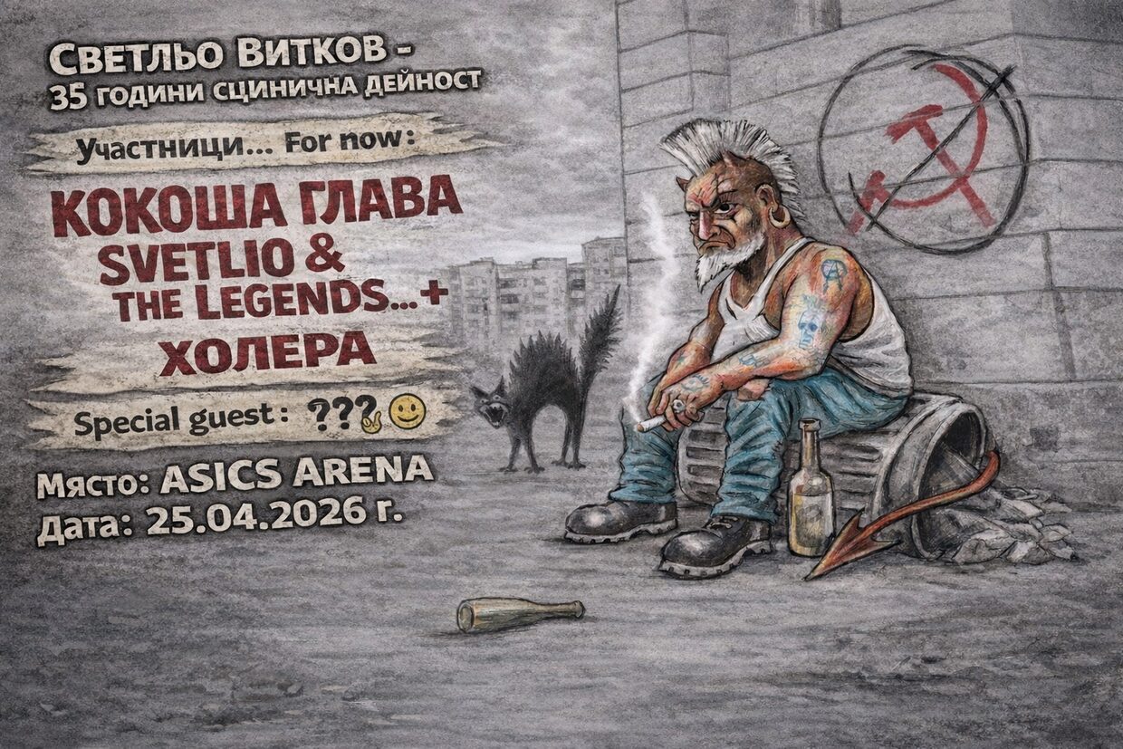 На 25 април зала „Арена Асикс“ ще се превърне в център на българската алтернативна сцена. Поводът е специален – 35 години на сцена на Светльо Витков, отбелязани с мащабен концерт, който събира едни от най-емблематичните и рядко виждани на живо групи у нас. Събитието няма да бъдe просто концерт, а среща на поколения, енергия и дух, оформили българската ъндърграунд култура през последните десетилетия.