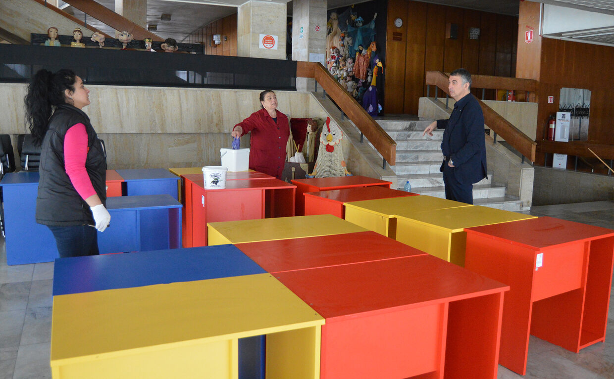 В театъра тече подготовка на помещенията, където ще работи преброителният център за предстоящите на 19 април парламентарни избори. За целта се транспортират бюра и столове от различни места. В ТМЦ ще бъде организирано предаването и обработката на изборните книжа от секционните комисии, след завършване на изборния ден.