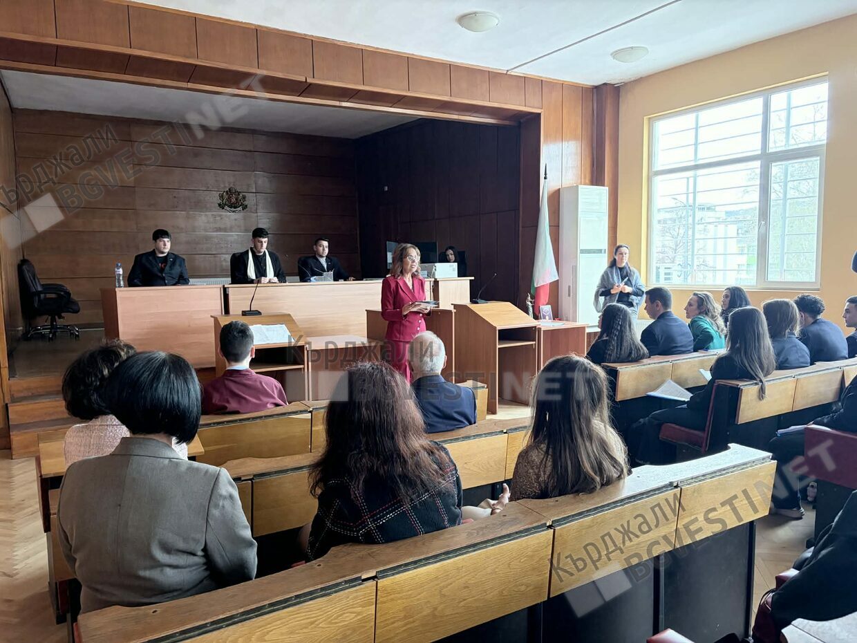 В симулирания съдебен процес с участието на ученици бе пресъздаден реален казус от съдебната практика на Окръжния съд, с внесен обвинителен акт на Окръжна прокуратура - Кърджали и четена присъда. За по-голяма достоверност, учениците буквално влязоха в дрехите на представителите на различните институции - в тогите на съдията, на прокурора.