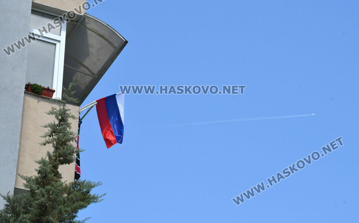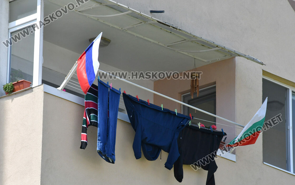 Жителите на хасковския квартал „Бадема“ осъмнаха с необичайна гледка, след като руският флаг бе развят редом до българското национално знаме на тераса в блок 13.