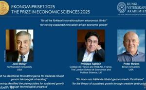 Наградата на Шведската риксбанка за икономически науки в памет на Алфред Нобел за 2025 г. е присъдена на Джоел Мокир (Joel Mokyr), Филип Агион (Philippe Aghion) и Петер Хауит (Peter Howitt) "за обясне...
