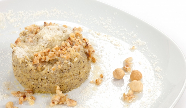 Шафранът се смесва с 1 супена лъжица гореща вода и се оставя за 20 минути. Във вряща подсолена вода се добавя на тънка струйка царевичното брашно. Вари се 10 минути при непрекъснато бъркане. Добавя с...