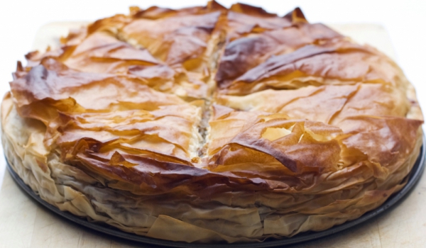 От продуктите се замесва тесто. Разделя се на 20 топчета, поръсват се с брашно, покриват се с кърпа и се оставят за половин час. От всяко топче се разточва тънка кора, разрязва се на две и се прегъва...