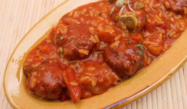 Нарежете свинското месо на парчета и ги сложете да се сварят в 600 мл вода. Щом кипне водата, извадете месата и прецедете бульона - по повърхността му се образува пяна, която трябва да се отстрани. В...